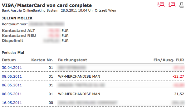 Am Ende des Monats kommt wie immer die VISA Rechnung: